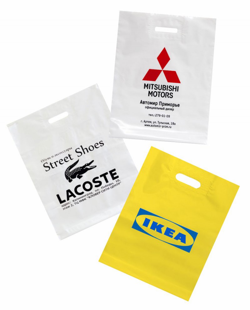 ПВД пакеты тиражами до 2000 штук изготавливаются только с прорубной ручкой и вышеуказанных размеров. Максимально возможное количество наносимых цветов - 4, рекомендуется до 3. В зависимости от размера, пакеты можно выбрать из 20 цветов.