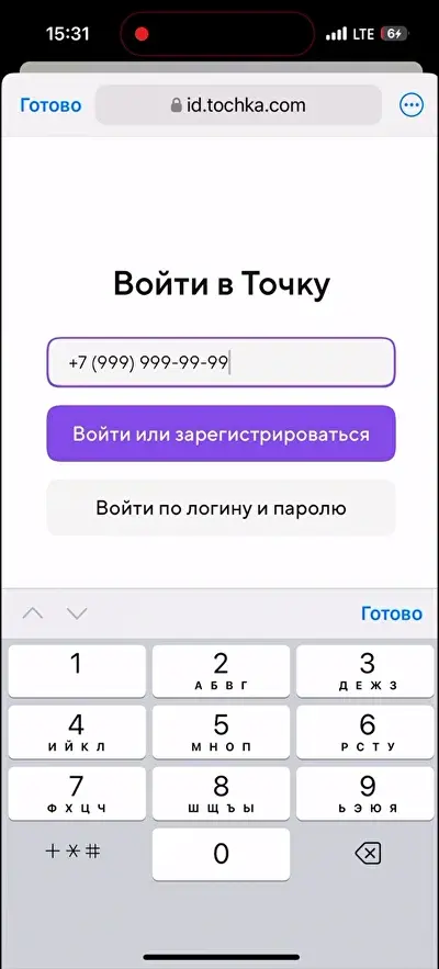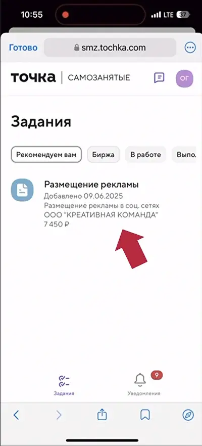 Регистрация в Точка.Самозанятые: