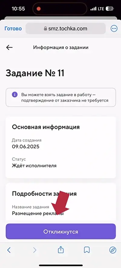 Выбираете задание – Размещение рекламы на автотранспорте от заказчика ООО «Креативная команда»