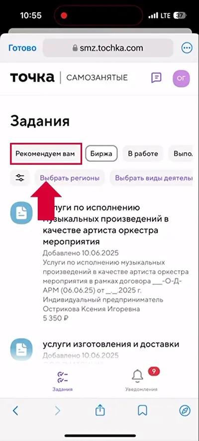 На странице Задания переходите во вкладку «Рекомендуем вам»